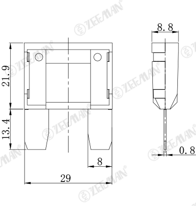 產(chǎn)品詳情 ATM-LED 慢熔保險絲 ATM-LED 慢熔保險絲 根據(jù)使用狀況,保險絲特性可能改變。 產(chǎn)品描述 額定電壓:小于直流32V 致斷容量: 1,000A@32V DC 使用溫度: -40℃~+125℃ 材質(zhì):1、鋅合金2、塑膠 執(zhí)行標(biāo)準(zhǔn): SAE J1888 推薦使用保險絲座: ZC-812? ZC-8012 選購 : 全系列ATM-LED 20ATM-LED 30ATM-LED 40ATM-LED 50ATM-LED 60ATM-LED 70ATM-LED 80 詢價 產(chǎn)品介紹 熔斷特性 額定電流% 熔斷時間 最小 最大 110% 100 hrs --- 135% 60 s 1800 s 160% 10 s 200 s 200% 2 s 60 s 350% 0.2 s 7 s 600% 0.04 s 1 s 保險絲目錄 零部件編號 額定電流(A) 外殼顏色 ATM-LED 20 20 A 黃色 ATM-LED 30 30 A 綠色 ATM-LED 40 40 A 橙色 ATM-LED 50 50 A 紅色 ATM-LED 60 60 A 藍色 ATM-LED 70 70 A 棕色 ATM-LED 80 80 A 白色